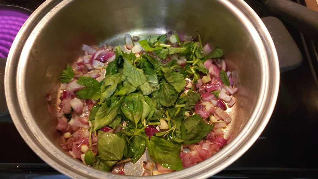 Chop onions, garlic and basil