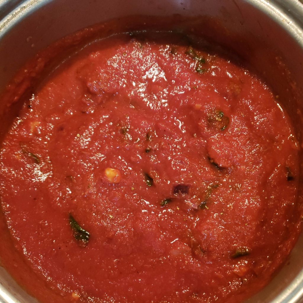 Add crushed tomatoes and tomato sauce